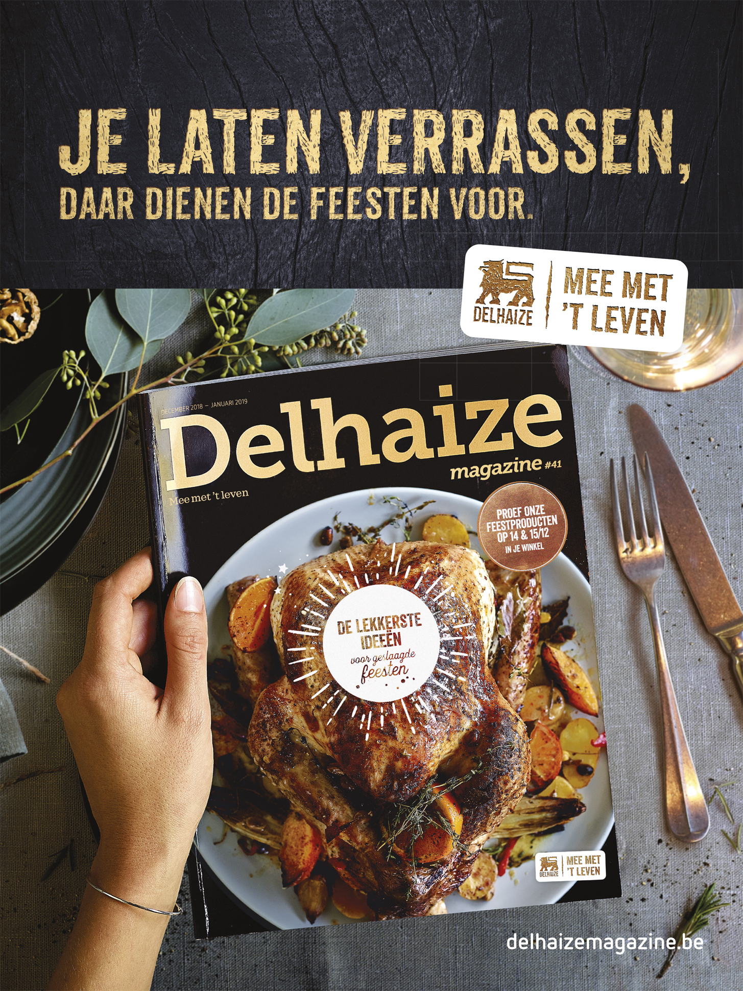 Op basis daarvan creëerde Delhaize een inspirerend feestmagazine, met daarin de populairste feestmenu’s en geactualiseerde feestklassiekers, dat op een extra-grote oplage aan klanten uitgedeeld wordt. Delhaize organiseert ook proeverijen waarbij feestproducten alvast gereserveerd kunnen worden, geeft wijnadvies en levert boodschappen thuis tijdens de drukke feestdagen.