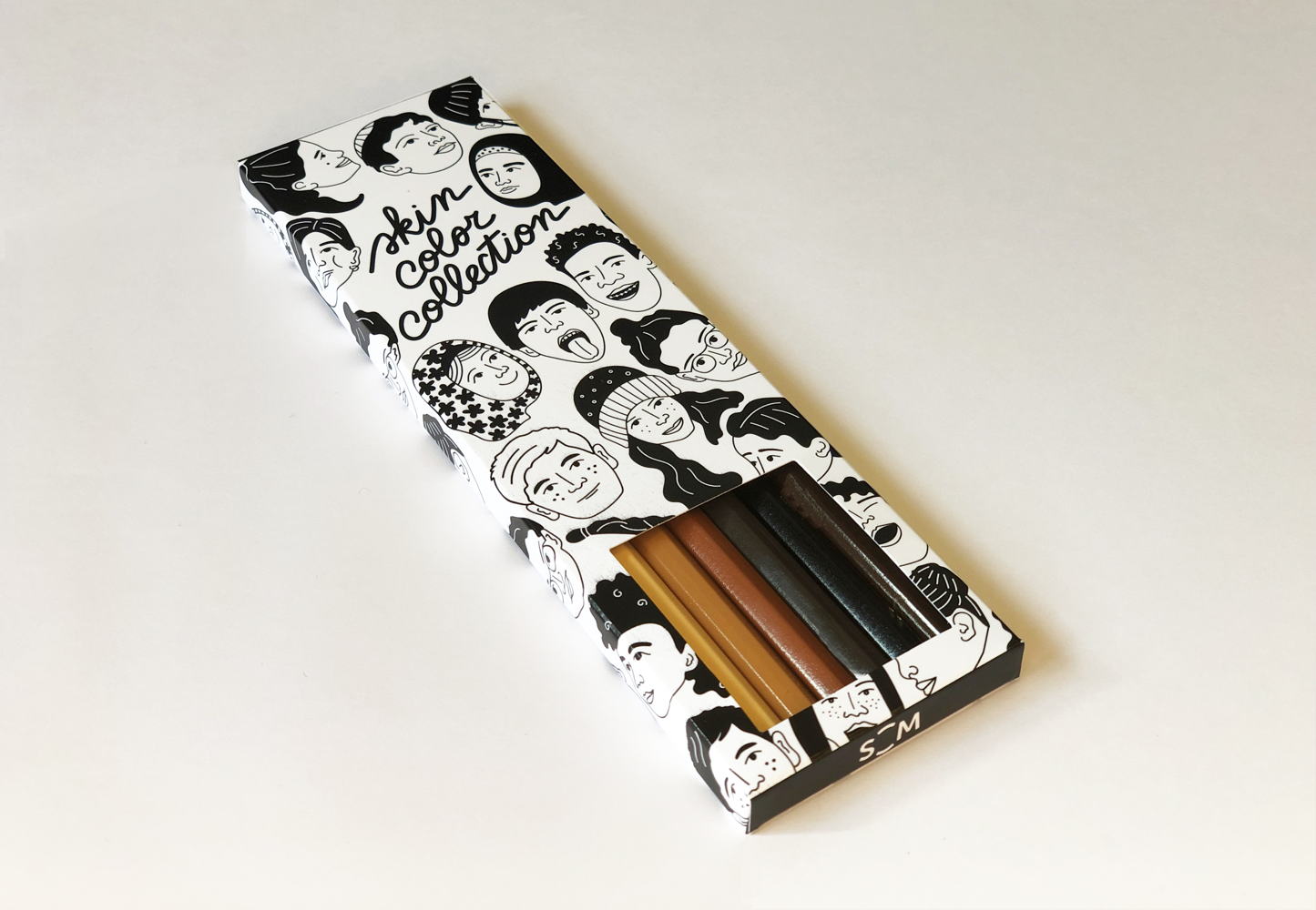 (1) Kleurpotlodenset bestaande uit 7 tinten huidskleur, ontwikkeld door SOM i.s.m. communicatiepartner TBWA.