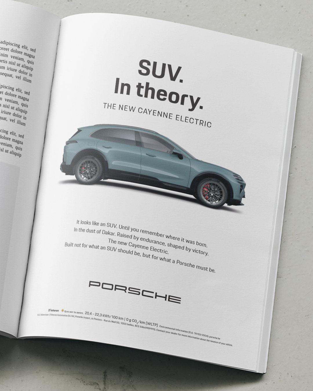 TBWA et Porsche Belgique signent leur première campagne commune autour de deux avant-premières européennes majeures : le Macan GTS 100 % Électrique et le Cayenne Électrique, dont la version Turbo peut être considérée comme la Porsche de série la plus rapide jamais produite.